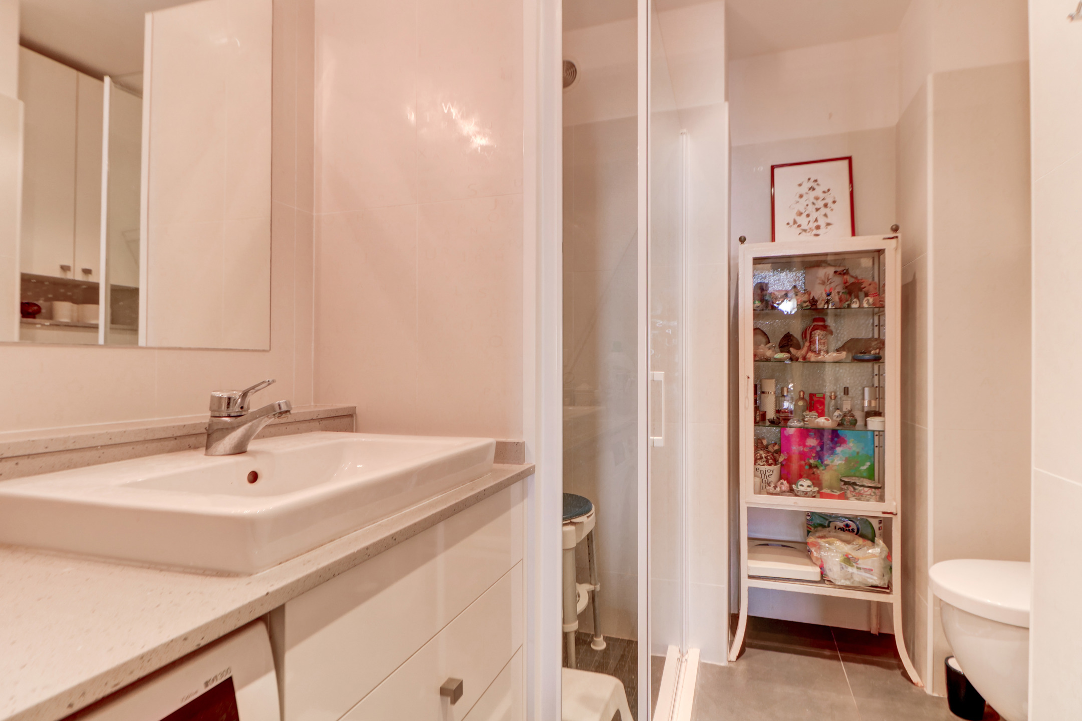 Les deux chambres disposent chacune d’un accès extérieur, garantissant luminosité et confort au quotidien. L’appartement comprend également deux salles de bains, une cuisine indépendante et un prolongement extérieur pour chaque pièce, un atout rare à Nice.