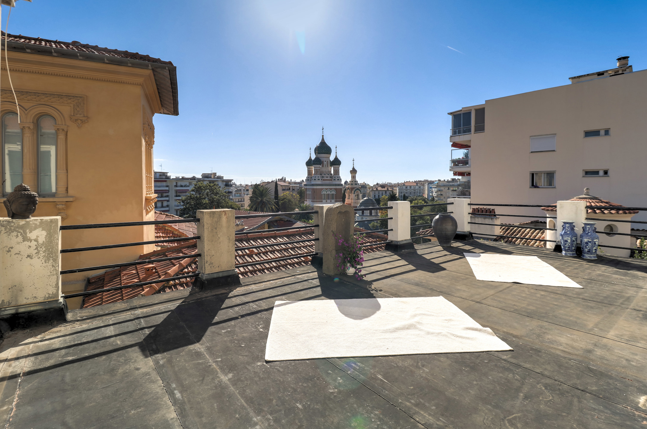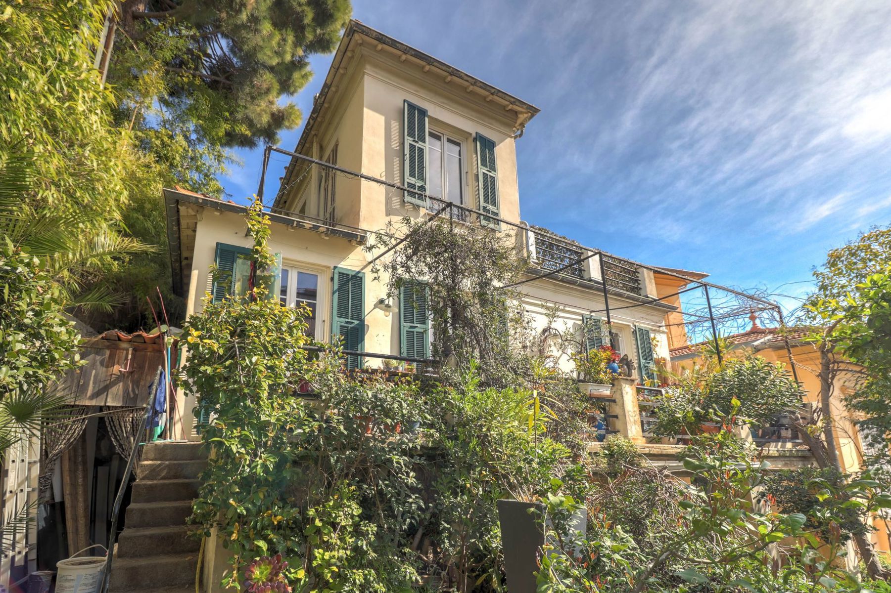VIDÉO DISPONIBLE !! Dans le quartier très recherché du Parc impérial, dans une petite rue au calme, au fond d'une allée verdoyante, à l'abri des regards, avec une superbe vue sur la cathédrale russe, je vous propose cet appartement-villa en duplex dans une maison de 1925. Exposé plein sud, vous serez séduit par ses 2 grandes terrasses plein sud, la luminosité, l'authenticité et la charme des lieux ou vous êtes à la campagne en pleine ville avec la mer et les plages à 800m. L'appartement est actuellement configuré en un appartement de 124m2 et un studio de 32m2, très facilement, il est possible de recréer un grand appartement de 156m2 !! Au RDC vous trouverez le studio indépendant, un salon séjour de 54m2, une cuisine et un toilette, le tout donnant sur une grande terrasse. Au 1er étage, vous avez deux chambres, un atelier, une salle de bains avec toilette et une grande terrasse de 40m2. Au RDJ une cave et un jardin. Le studio est actuellement loué 740€/mois. Vous trouverez des établissements scolaires de tous niveaux (des crèches à la maternelle et au lycée) à moins de 10 minutes à pied. Toutes les commodités sont à proximité, que ce soit la gare Nice, le tramway et tous les commerces.